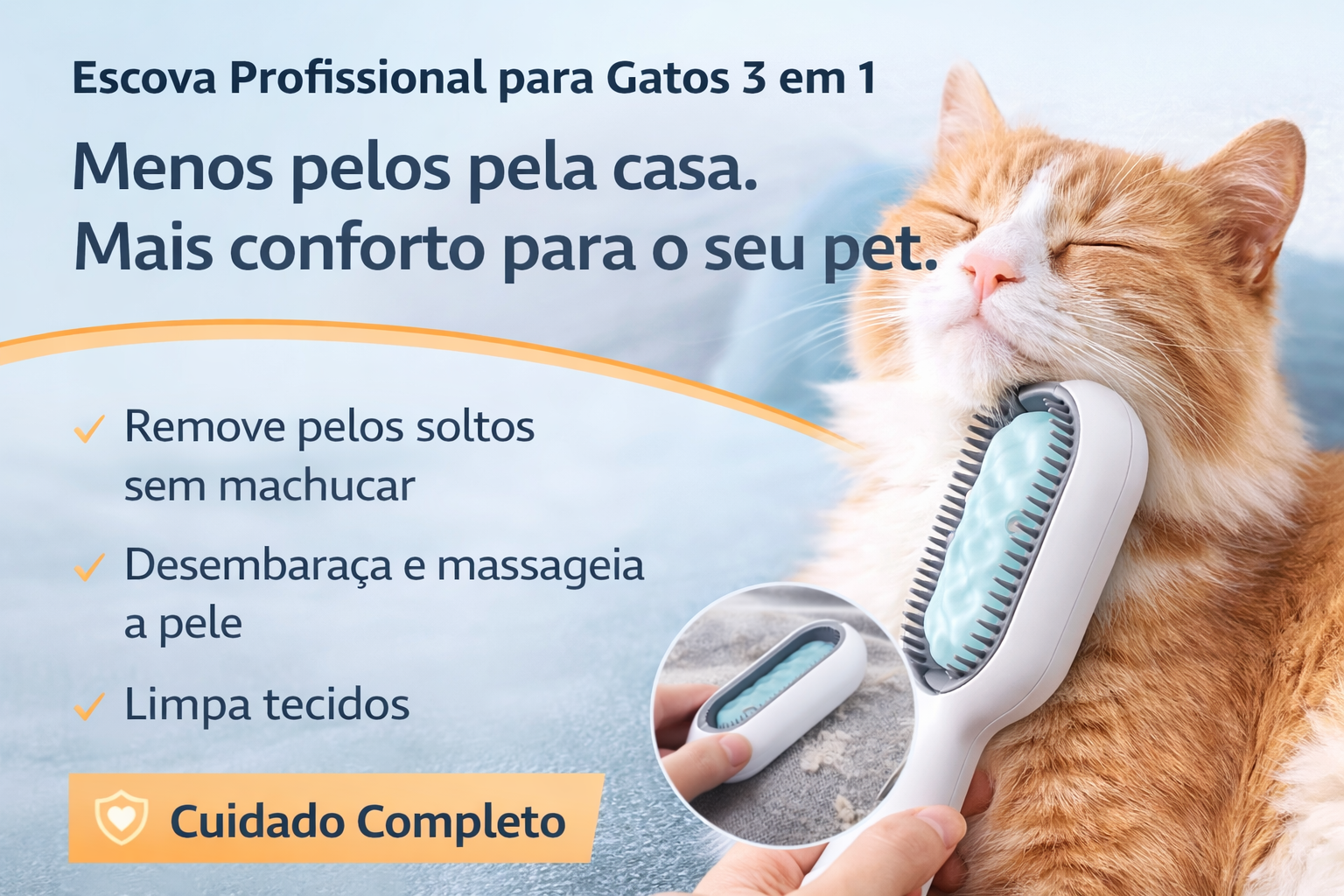 Imagine transformar a escovação em um momento de carinho, conexão e cuidado real com quem sempre está ao seu lado. A Escova Profissional para Gatos 3 em 1 não é apenas um acessório — é um gesto de amor diário.